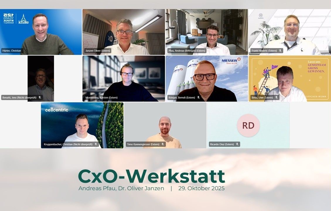 Dabei ist die CxO-Werkstatt keine reine Diskussionsrunde, sondern eine aktive, zielgerichtete Beratung auf Augenhöhe. Die Teilnehmer bringen eigene Herausforderungen ein und profitieren gleichzeitig von der kollektiven Expertise der Gruppe – ein persönliches Advisory-Board für die digitale Transformation.